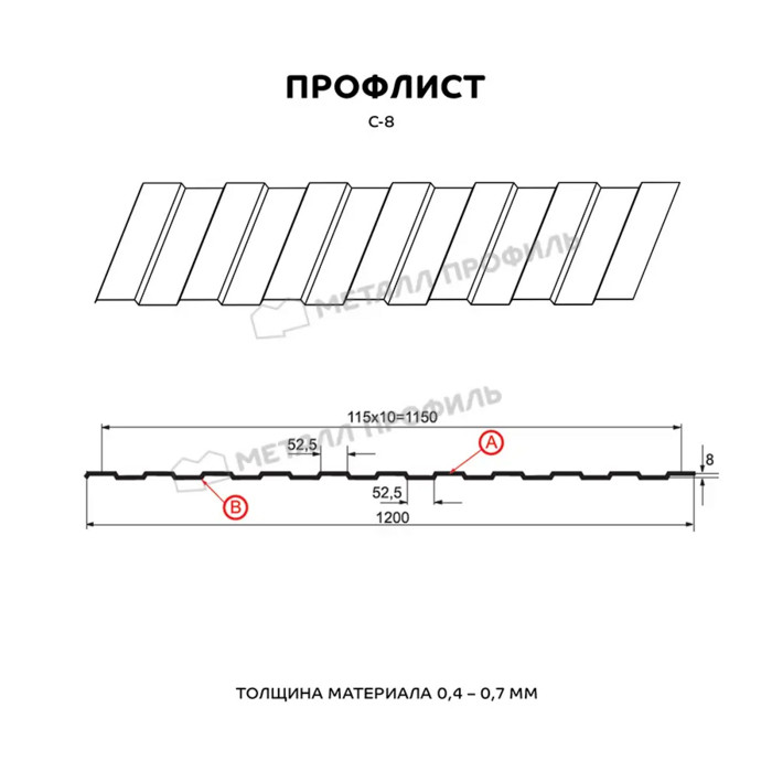 Профлист Металл Профиль С-8 0,5 NormanMP RAL 8017 Коричневый шоколад | B