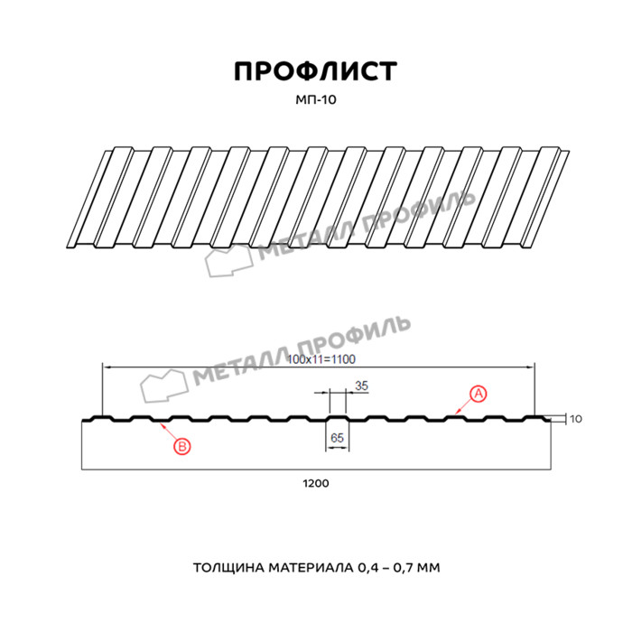 Профлист Металл Профиль МП-10 0,5 NormanMP RAL 7024 Серый графит | B